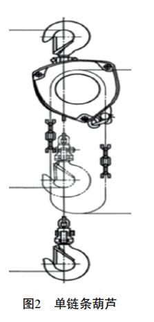 低速環(huán)鏈電動葫蘆又稱低速環(huán)鏈電動提升機(jī),在建筑施工、裝卸搬運(yùn)、造船、路橋施工、設(shè)備安裝等領(lǐng)域得到了廣泛應(yīng)用。低速環(huán)鏈電動葫蘆是由手拉葫蘆加裝電機(jī)改進(jìn)而來,結(jié)構(gòu)簡單,沒有安全保護(hù)裝置和超載離合器,速度、動力和工作效率比人力手拉都有很大的提高。但也存在卡鏈、扭鏈、脫鏈的風(fēng)險,嚴(yán)重時造成鏈條被剪斷。單鏈條低速環(huán)鏈電動葫蘆由于只有一根鏈條受力,鏈條在鏈輪的一側(cè),造成鏈輪一側(cè)受力,葫蘆的上吊點(diǎn)和下吊點(diǎn)不在一條鉛錘線上的受力不平衡情況,葫蘆整體存在扭轉(zhuǎn)力矩,受力狀況較差。