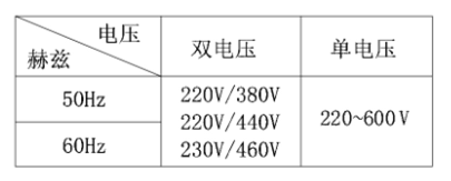 HHBB環鏈電動葫蘆可以做單電壓或雙電壓,電壓范圍在220V-600V,具體如下圖: