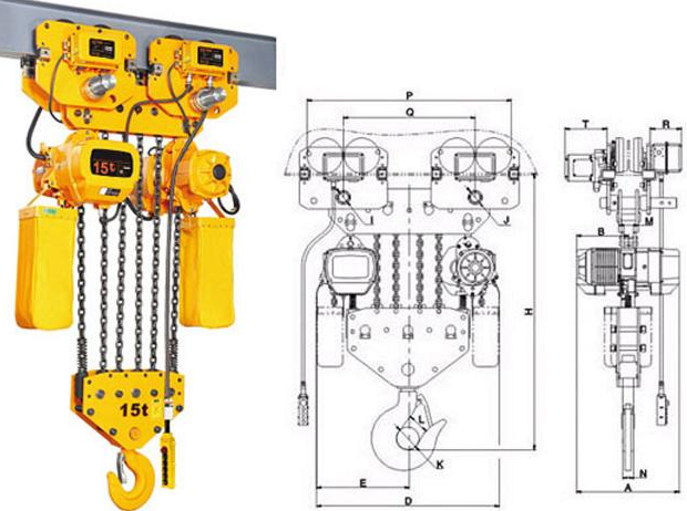 15t HHBB環鏈電動葫蘆主要零部件均采用高合金鋼材料,并且經過多道特殊熱處理工藝加工,具有強度高,耐磨性好等特點。上下吊鉤采用高強度合金鋼制作,經強化熱處理后具有很高的韌性,即使機體因超載而損壞,吊鉤也只會塑性變形,而不會發生脆性斷裂。